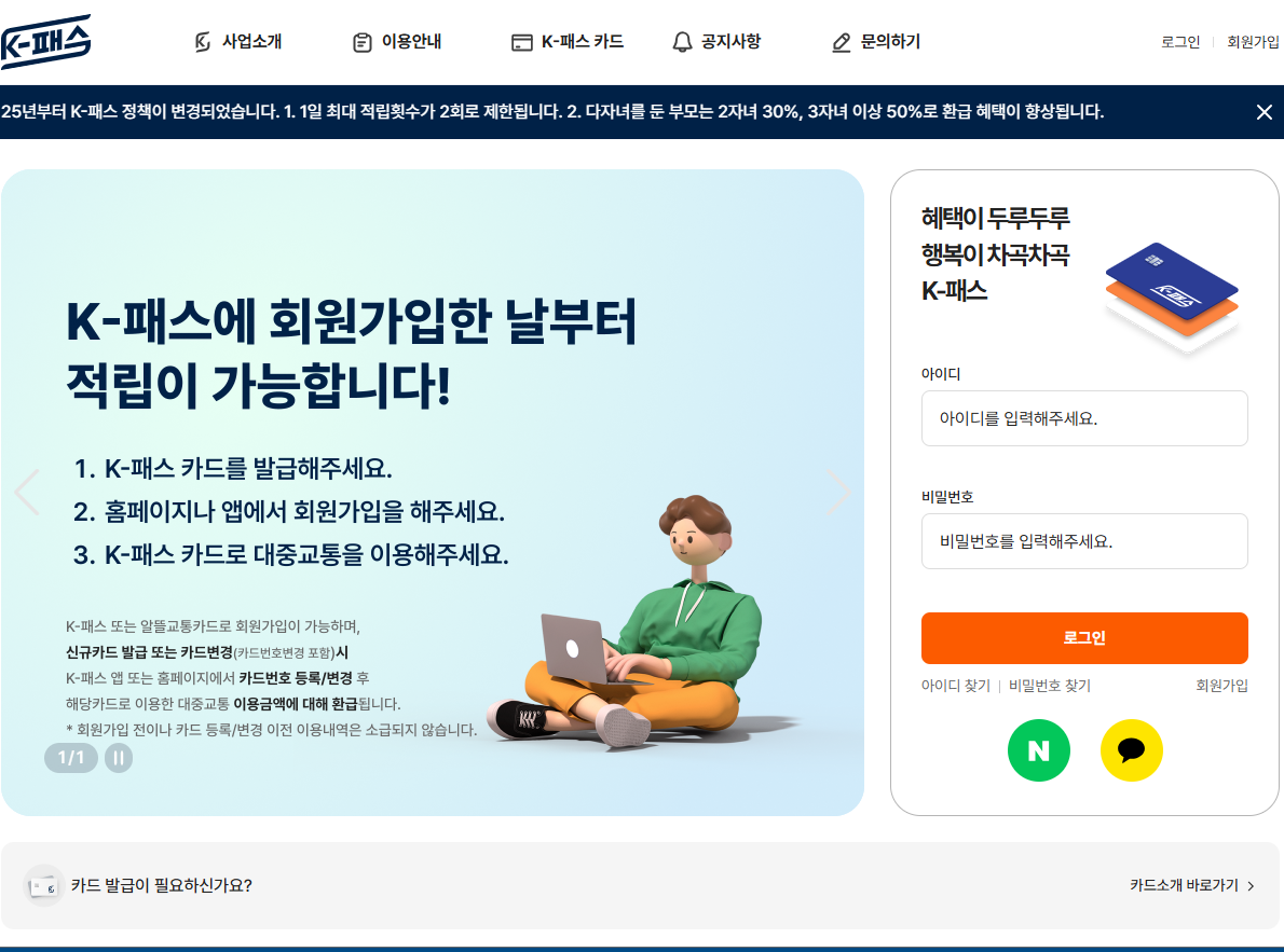 k패스 홈페이지 교통카드 환급방법