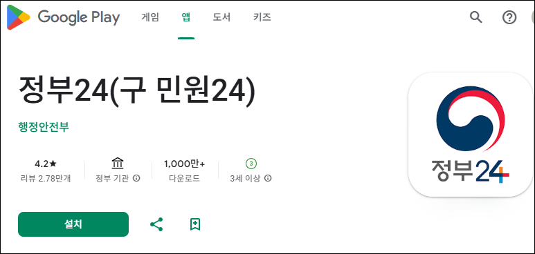 정부 24앱 설치 다운로드